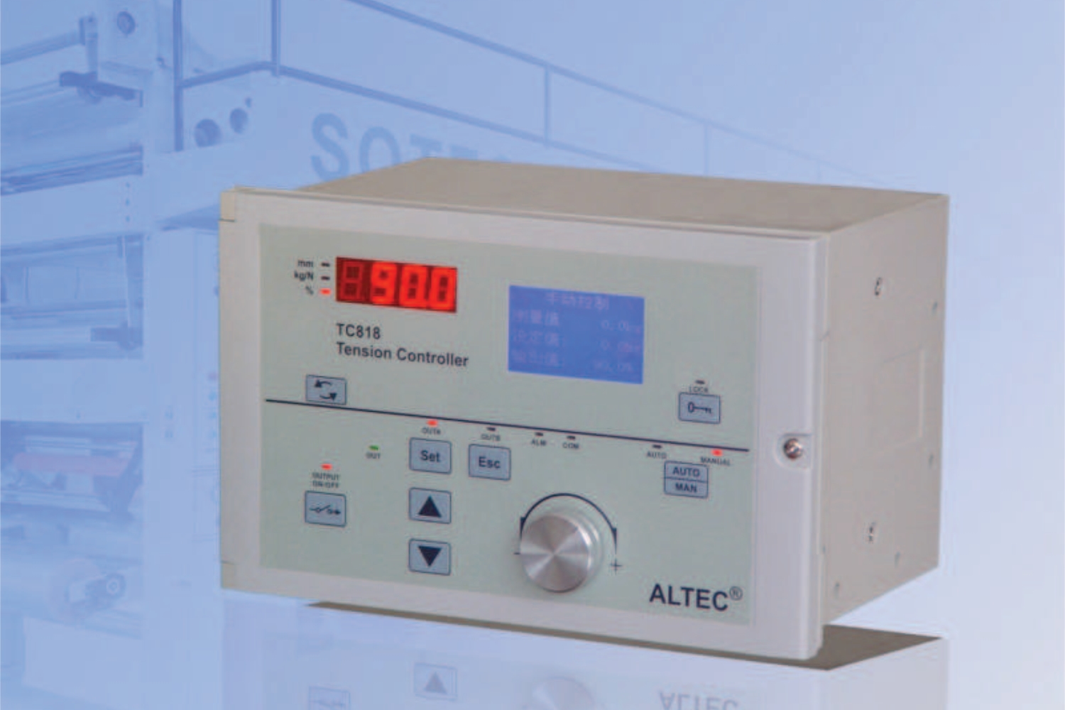 TC818張力控制器采用圖形液晶顯示器,可選擇中、英文顯示,界面友好易用,可輸出0~24V/4A或0~36V/3A直接驅動磁粉離合器,磁粉制動器,也可以輸出0~5V,4-20mA,-5V~+5V信號,控制變頻器,伺服電機或其它執行機構,對卷料系統進行高精度的張力控制。可廣泛應用于造紙、印刷、包裝、紡織印染等行業。